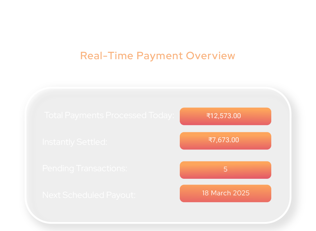 “Experience fast, efficient payment processing with no delays in transactions. Improve cash flow with instant access to funds, ensuring your business stays agile. No more waiting, every transaction is completed in real time, offering peace of mind.”